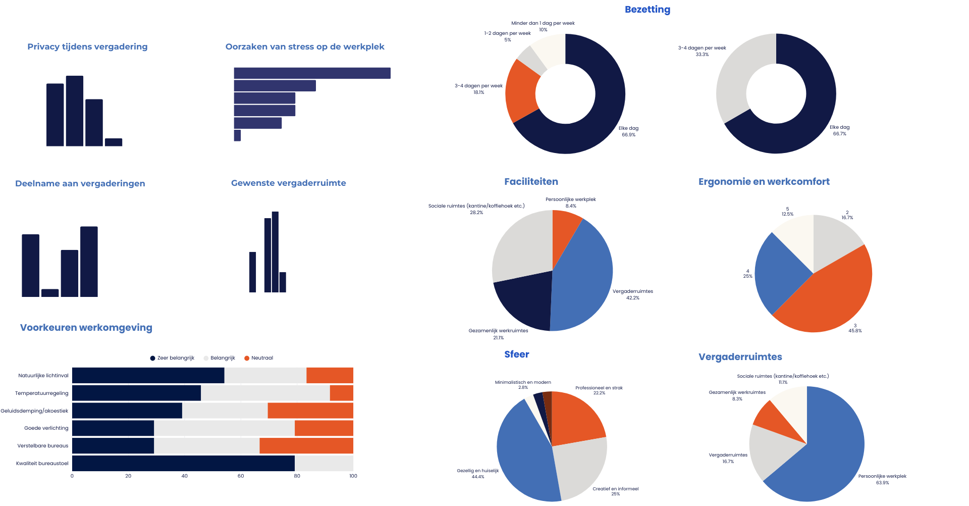 Factoren als akoestiek, daglicht, sfeer en natuurbeleving worden gemeten om de totale werkervaring in kaart te brengen.